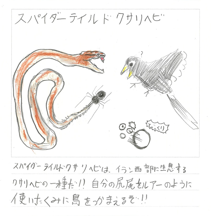 しんのすけくんは、は虫類にも詳しいんだね!スパイダーテイルドクサリヘビは狩りの名人だね!